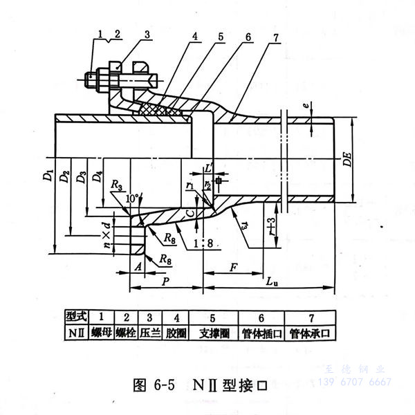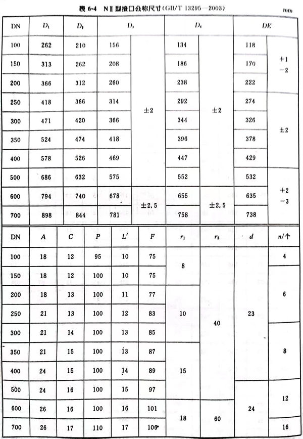 3. NⅡ 型接口球铁管的型式见图6-5,公称尺寸见表6-4;