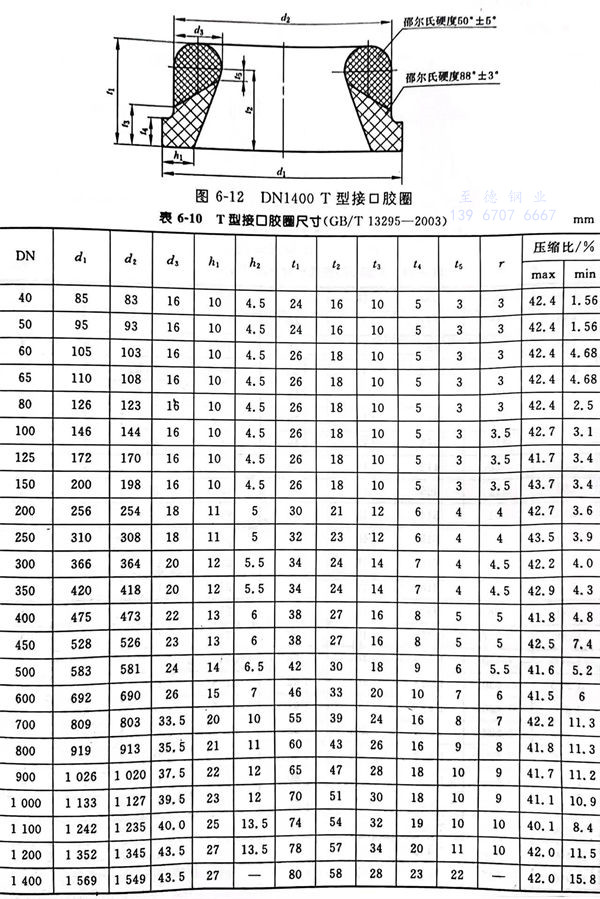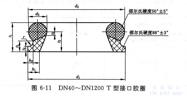 T 型接口用胶圈的型式见图6-11 和图6-12,尺寸见表6-10。