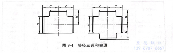 等径三通和四通型式见图 9-4,尺寸见表 9-6 。