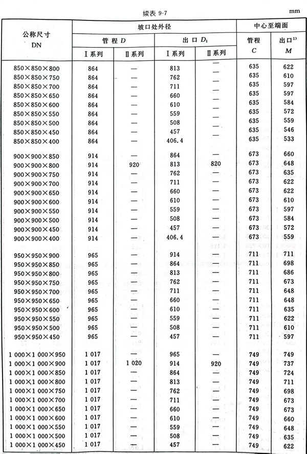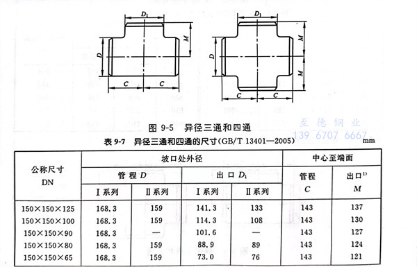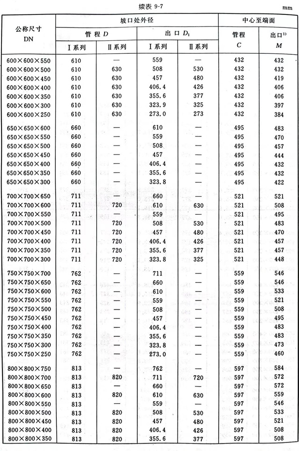 异径三通和四通型式见图 9-5,尺寸见表 9-7 。