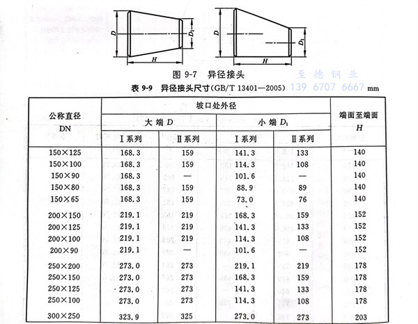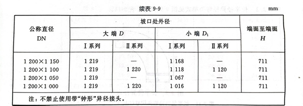 异径接头型式见图 9-7,尺寸见表 9-9 。