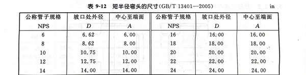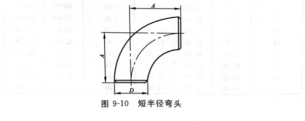 短半径弯头型式见图 9-10,尺寸见表 9-12 。
