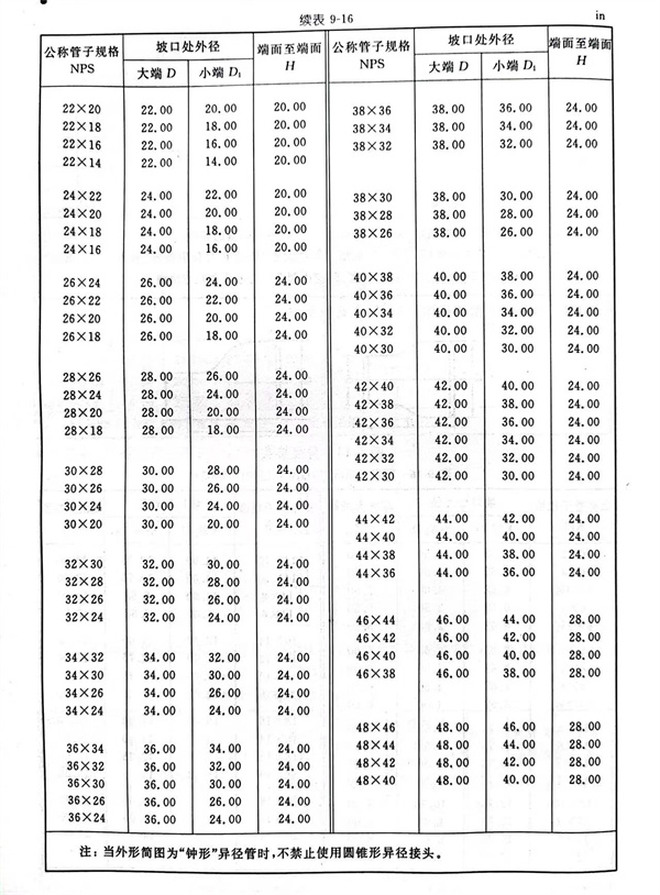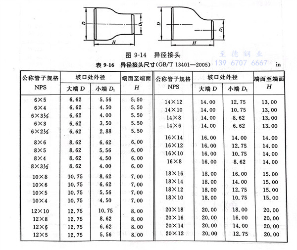 异径接头型式见图 9-14,尺寸见表 9-16 。