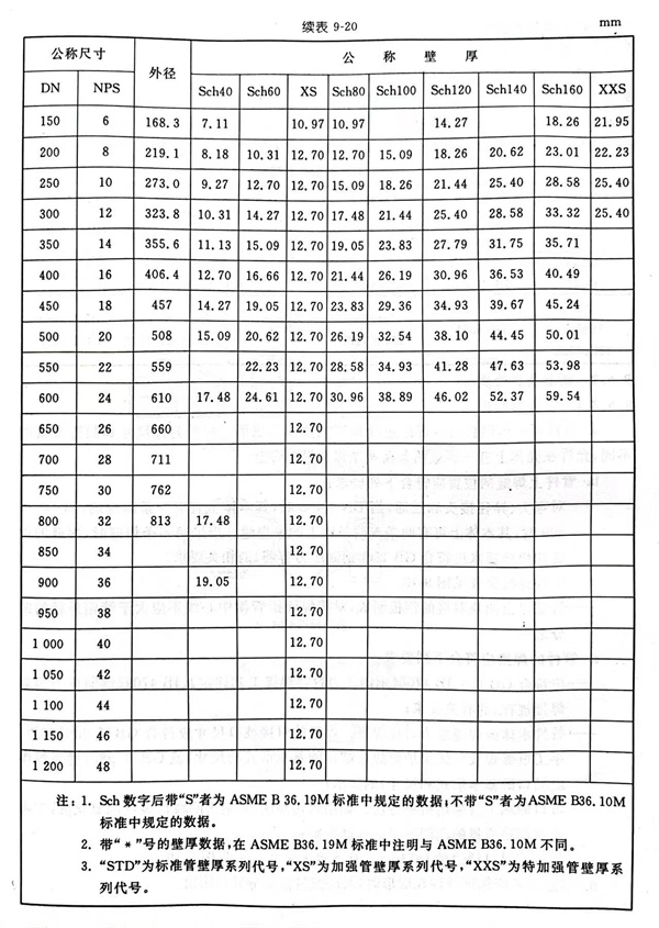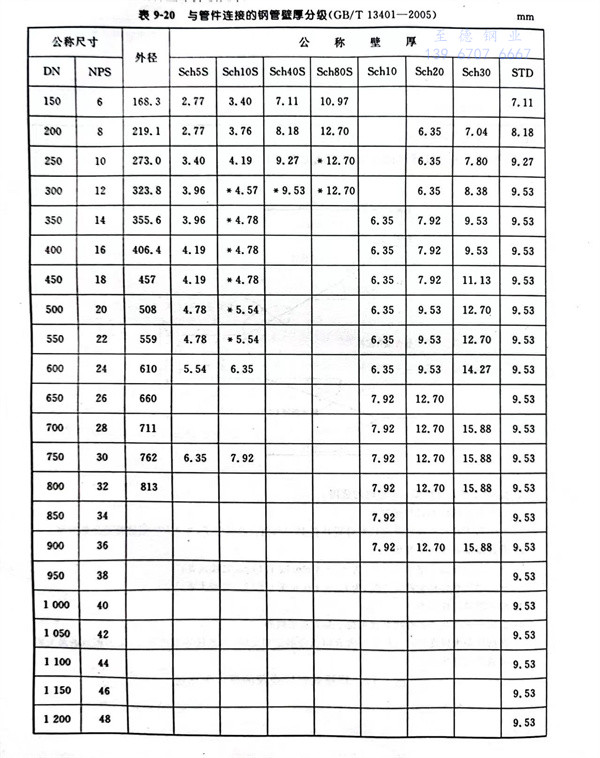 与管件连接的钢管的壁厚分级见表 9-20.