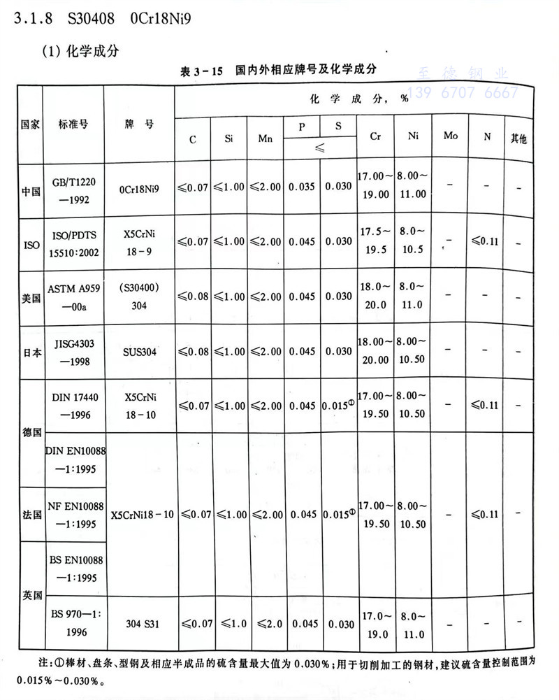 S30408 0Cr18Ni9 不锈钢主要特性和用途