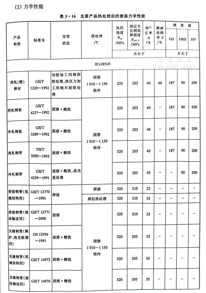 是奥氏体型不锈钢中生产量和使用量最大的牌号之一。具有优良的耐腐蚀性能以及冷加工冲压性能。对氧化性酸(如硝酸)具有很强的耐腐蚀性。对碱溶液及大部分有机酸和无机酸亦有一定的耐腐蚀能力。低温性能较好,在-180℃条件下强度、伸长率和断面收缩率都很好。