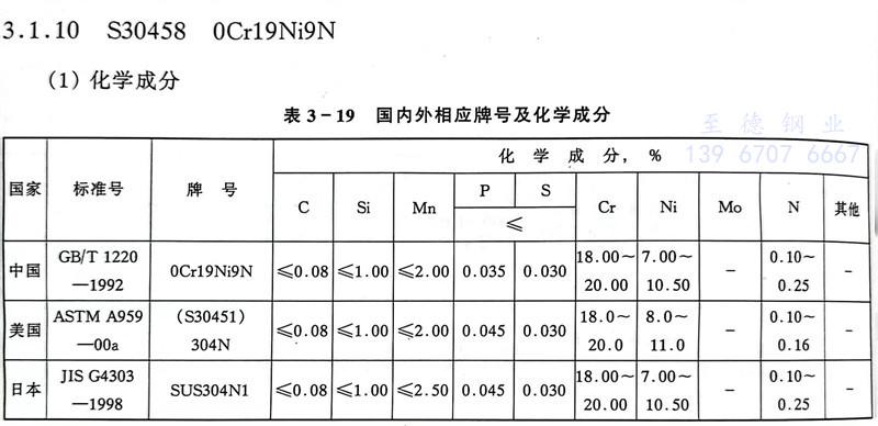 S30458 0Cr19Ni9N 不锈钢主要特性和用途