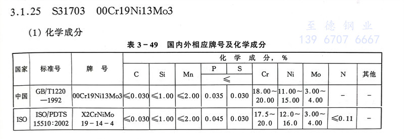 S31703 00Cr19Ni13Mo3 不锈钢主要特性和用途