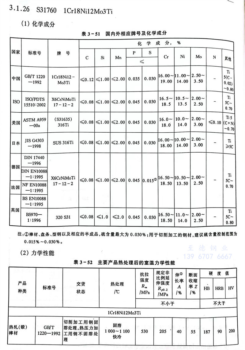 S31760 1Cr18Ni12Mo3Ti 不锈钢主要特性和用途