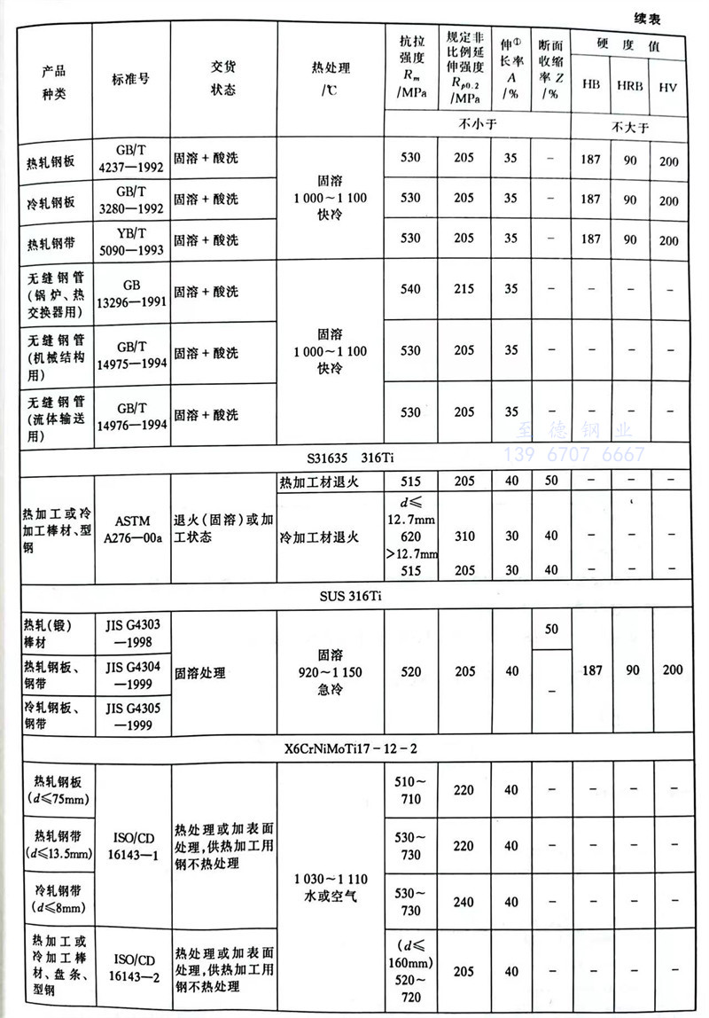 用途基本与1Cr18Ni12Mo2Ti 不锈钢相同,但使用条件可更为苛刻。