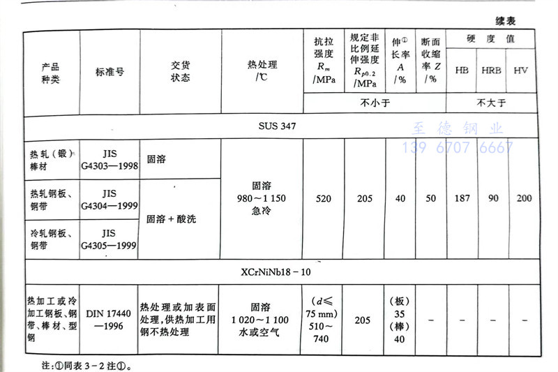 S34771 1Cr19Ni11Nb 不锈钢主要特性和用途