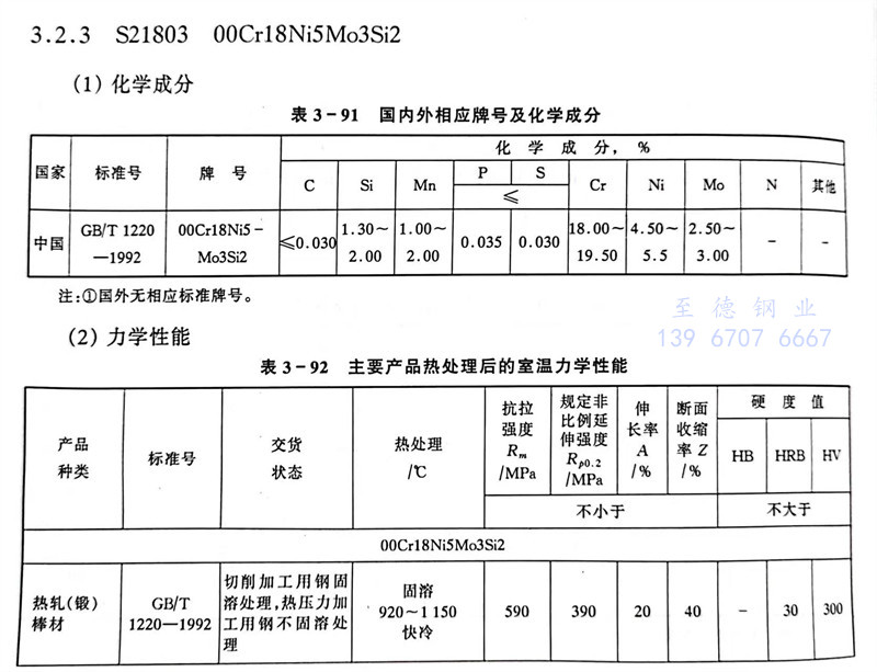 S21803 00Cr18Ni5Mo3Si2 不锈钢主要特性和用途