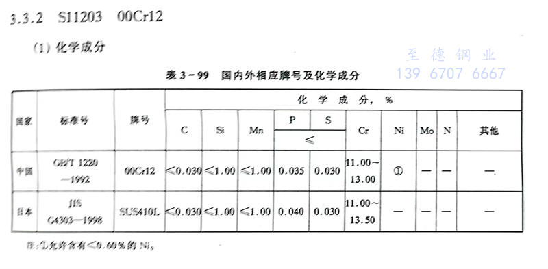 S11203 00Cr12 不锈钢主要特性和用途