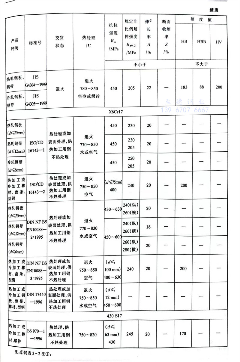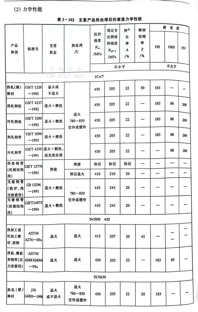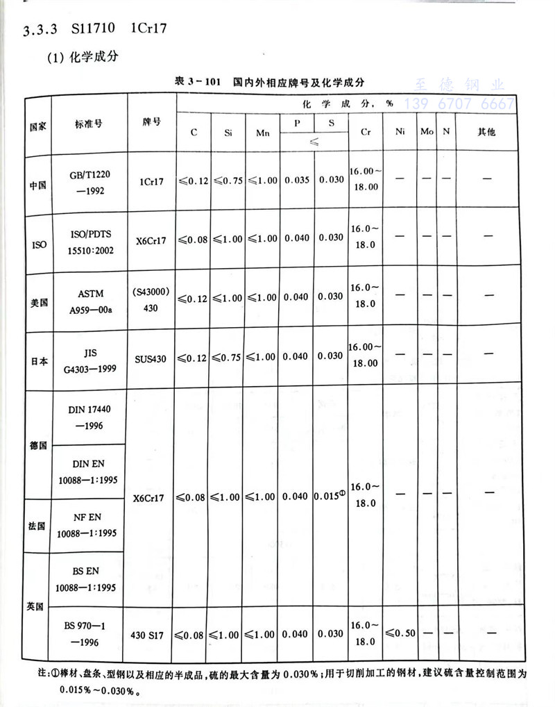 S11710 1Cr17 不锈钢主要特性和用途