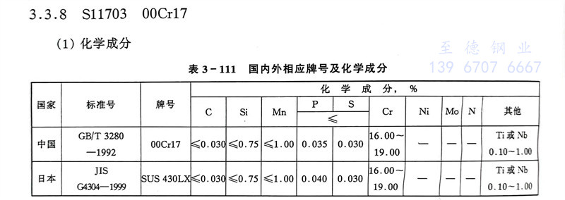 S11703 00Cr17 不锈钢主要特性和用途