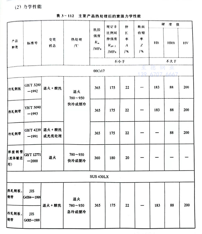 此钢是在1Cr17不锈钢中加入钛或铌,再将碳含量降到0.030%以下炼成,从而改善了加工性能、焊接性能和耐蚀性能。
