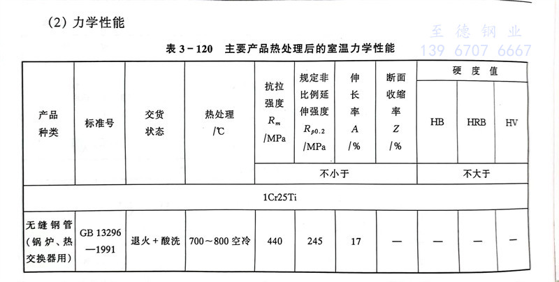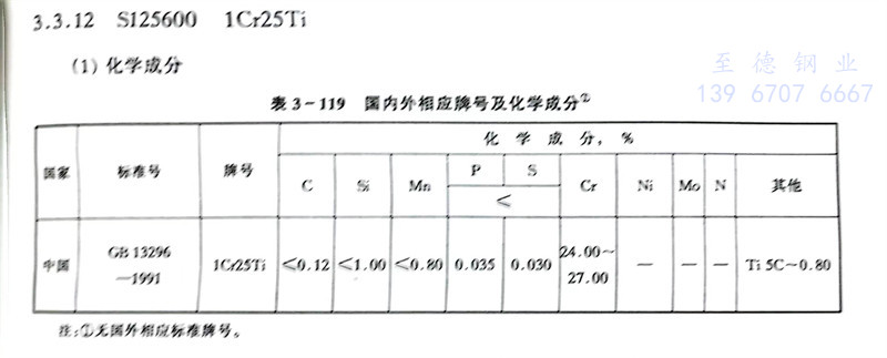 S125600 1Cr25Ti 不锈钢主要特性和用途