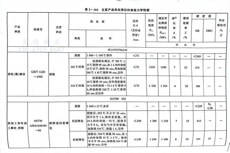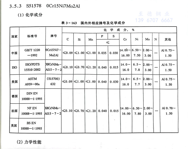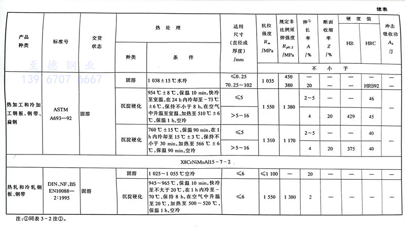 S51578 0Cr15Ni7Mo2Al 不锈钢主要特性和用途