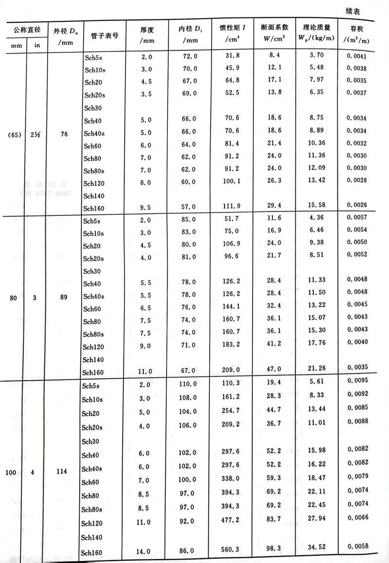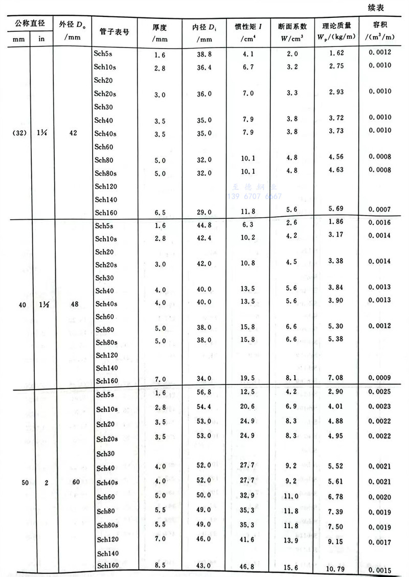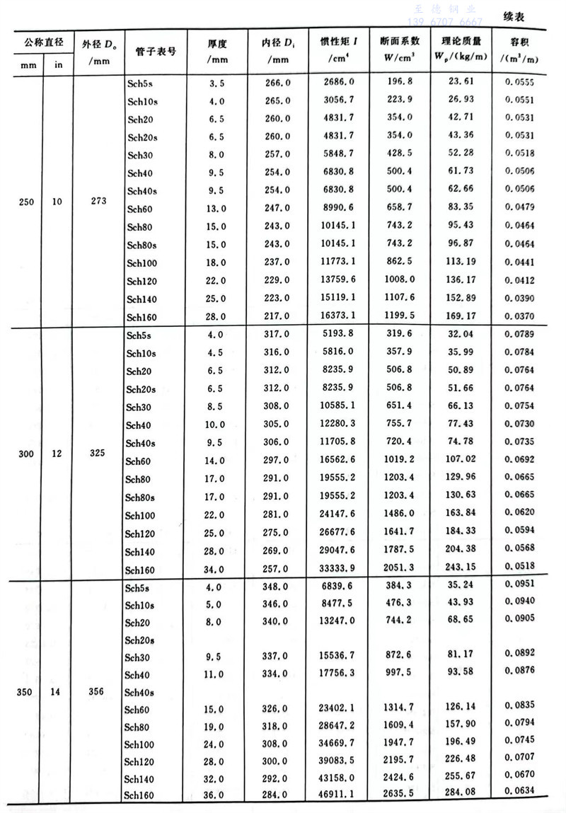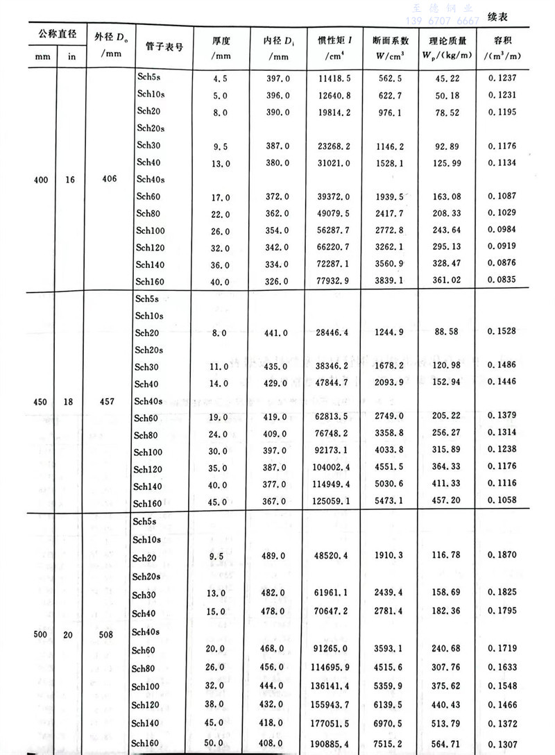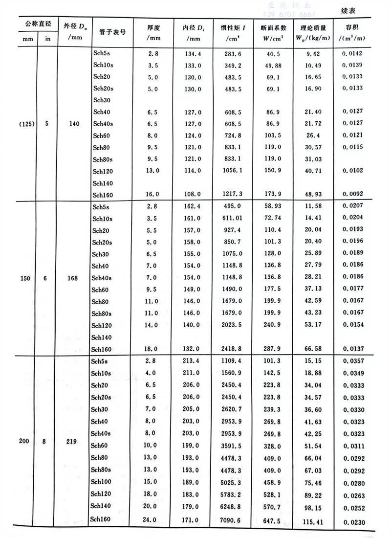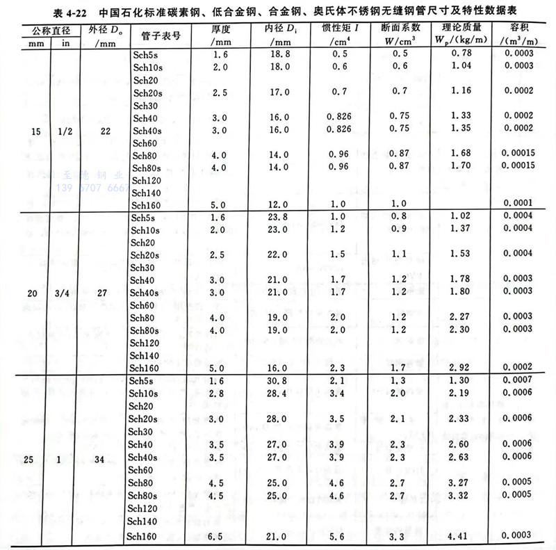 中国石化标准碳素钢、低合金钢、合金钢、奥氏体不锈钢无缝钢管尺寸及特性数据表
