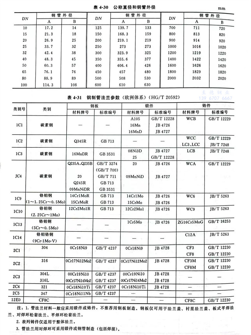 注:1.管法兰材料一般应采用锻件或铸件,不推荐用钢板制造。钢板仅可用于法兰盖、衬里法兰盖、板式平焊法兰、对焊环松套法兰、平焊环松套法兰。