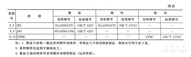 注:1. 管法兰材料一般应采用锻件或铸件,带颈法兰不得用钢板制造。钢板仅可用于法兰盖。