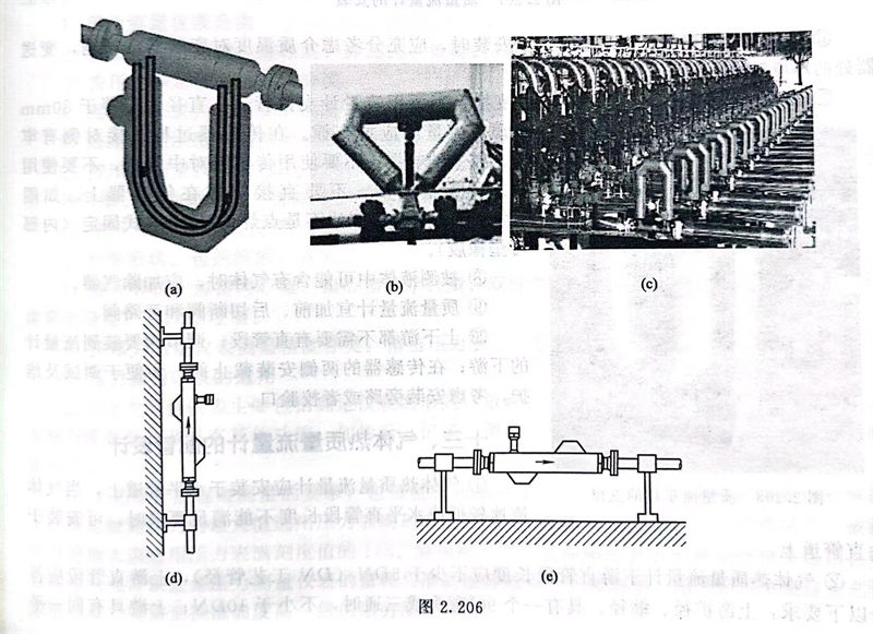 ⑤. “Ω”形质量流量计在水平管道上的安装,应符合以下要求:测量气体时,“”形管应置于管道上方;测量液体时,“Ω”形管应置于管道下方,见图2.207。