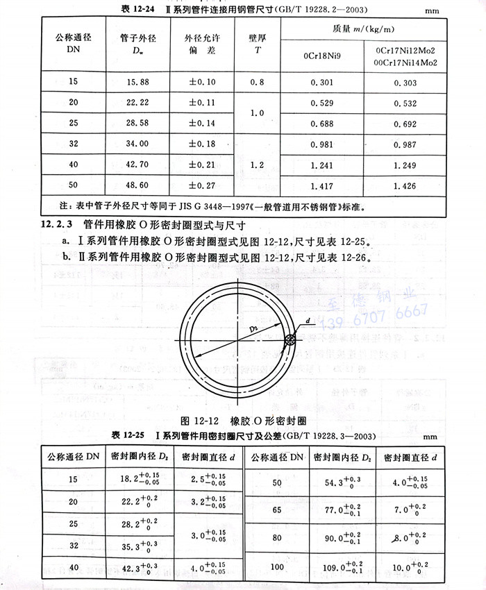 b. Ⅱ系列管件连接用薄壁不锈钢管尺寸见表12-24。