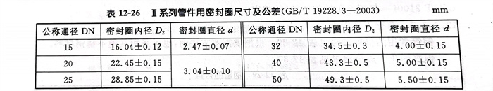 b. Ⅱ系列管件用橡胶O形密封圈公差见表12-26。