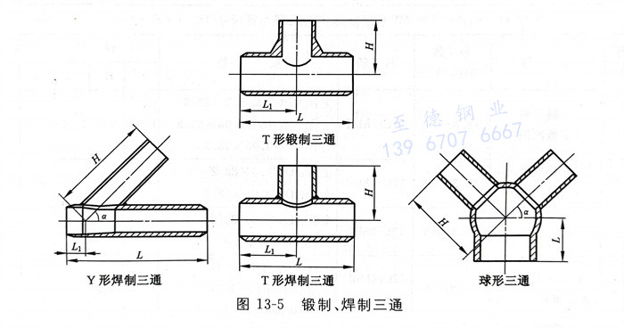 a. 引进型600MW机组锻制、焊制三通结构型式见图13-5,尺寸见表13-10;引进型300MW 机组锻制、焊制三通结构型式见图13-5,尺寸见表13-11;