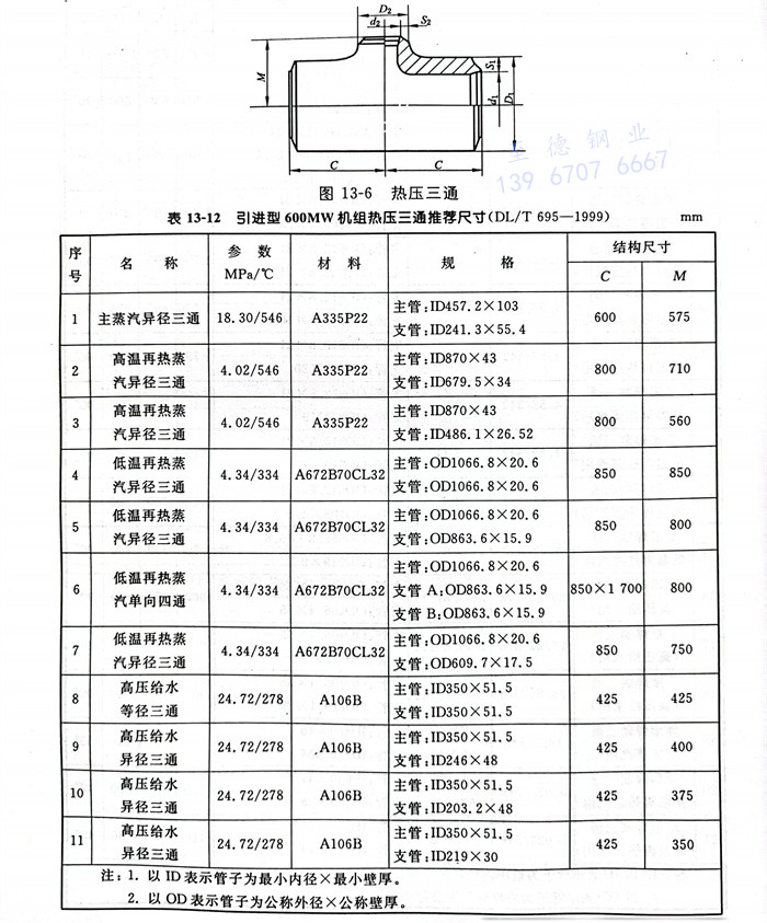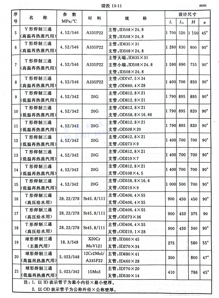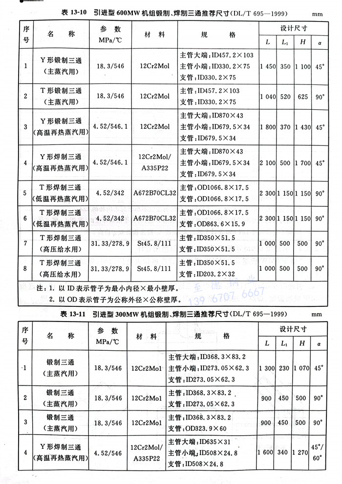 引进型600MW 机组及300MW 机组用管件包括火电厂锻制、焊制三通及热压三通两种尺寸。
