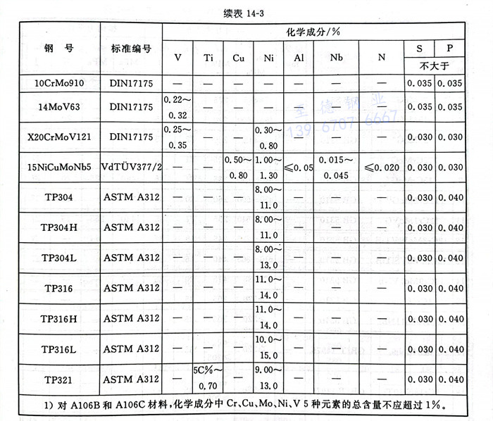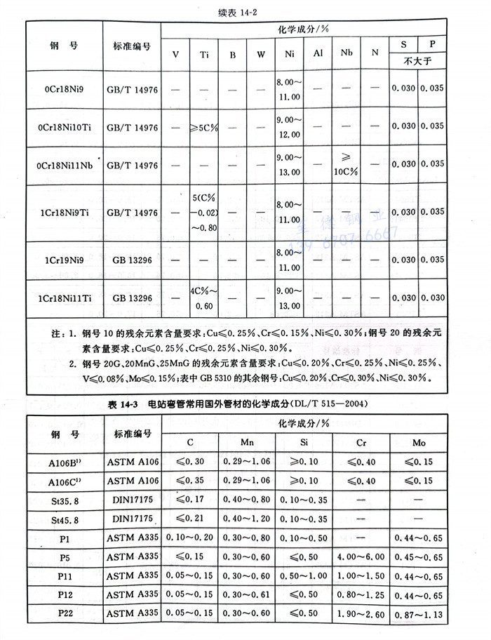 b. 电站弯管常用国外管材的化学成分见表14-3。