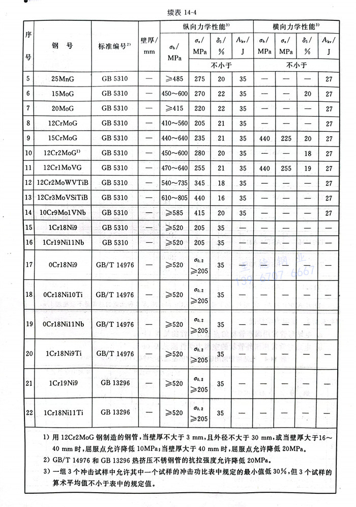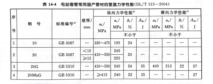 a. 电站弯管常用国产管材的室温力学性能见表14-4。
