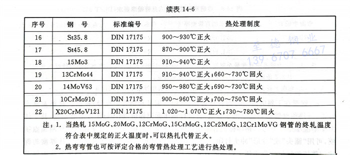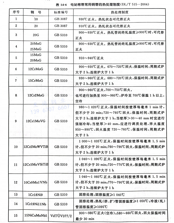 电站弯管常用钢管的热处理制度见表 14-6
