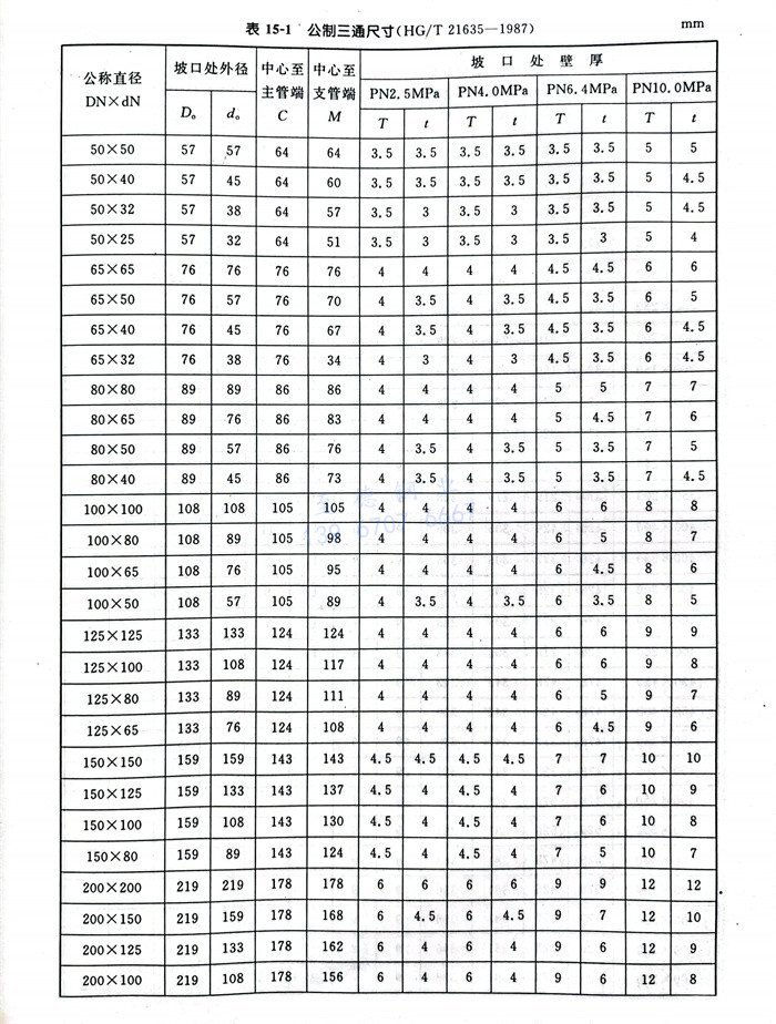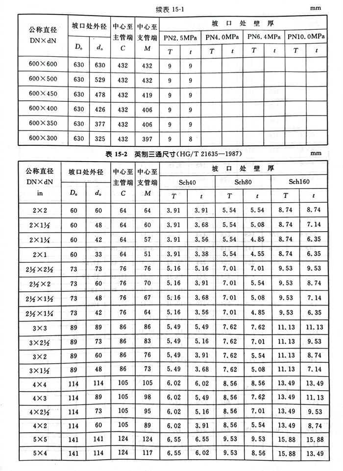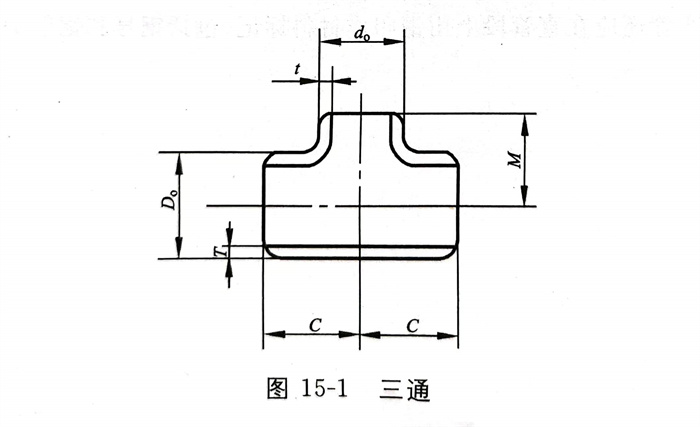 三通型式见图15-1,公制三通尺寸见表15-1;英制三通尺寸见表15-2。