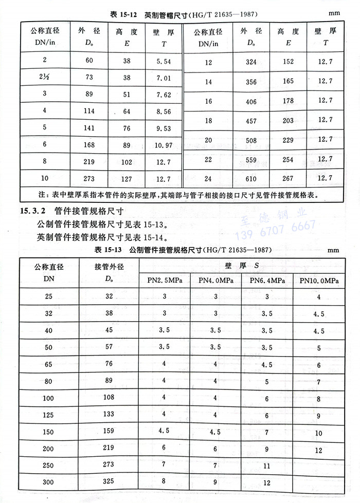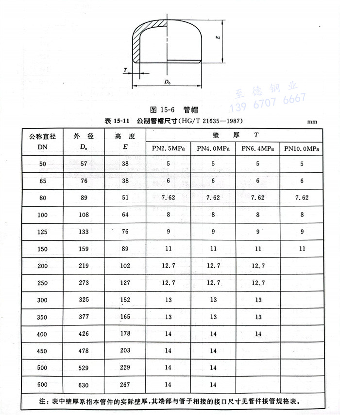管帽型式见图15-6,公制三通尺寸见表15-11;英制三通尺寸见表15-12。