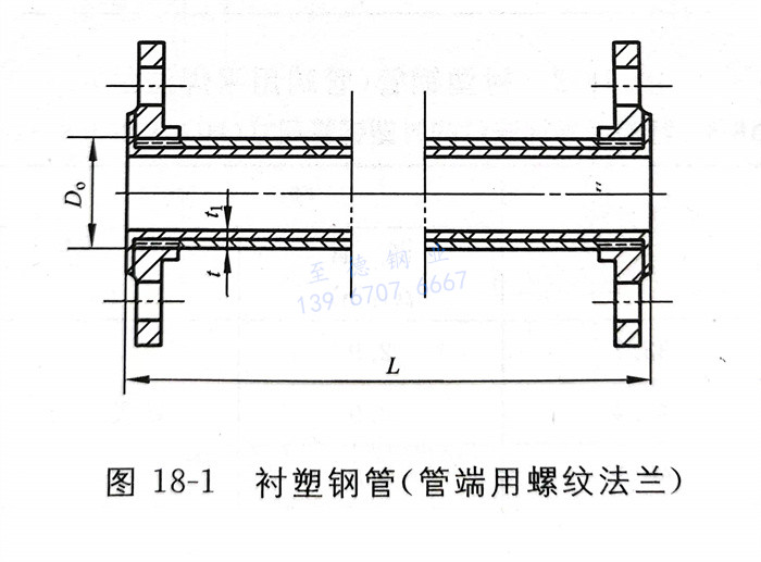 a. 管端用螺纹法兰连接的衬塑钢管型式见图18-1,尺寸见表18-2。