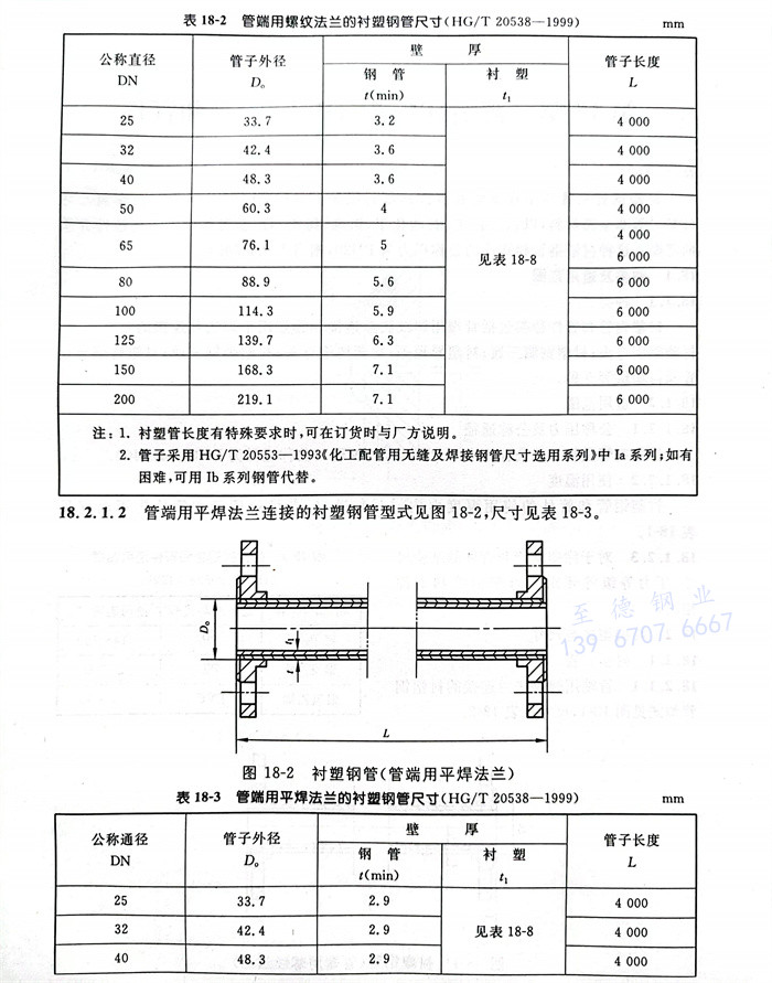b. 管端用平法兰连接的衬塑钢管型式见图18-2,尺寸见表18-3。