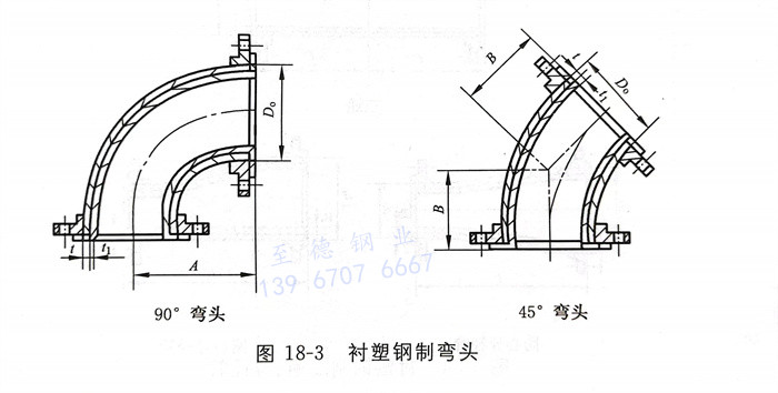 衬塑钢制弯头型式见图18-3,尺寸见表18-4。