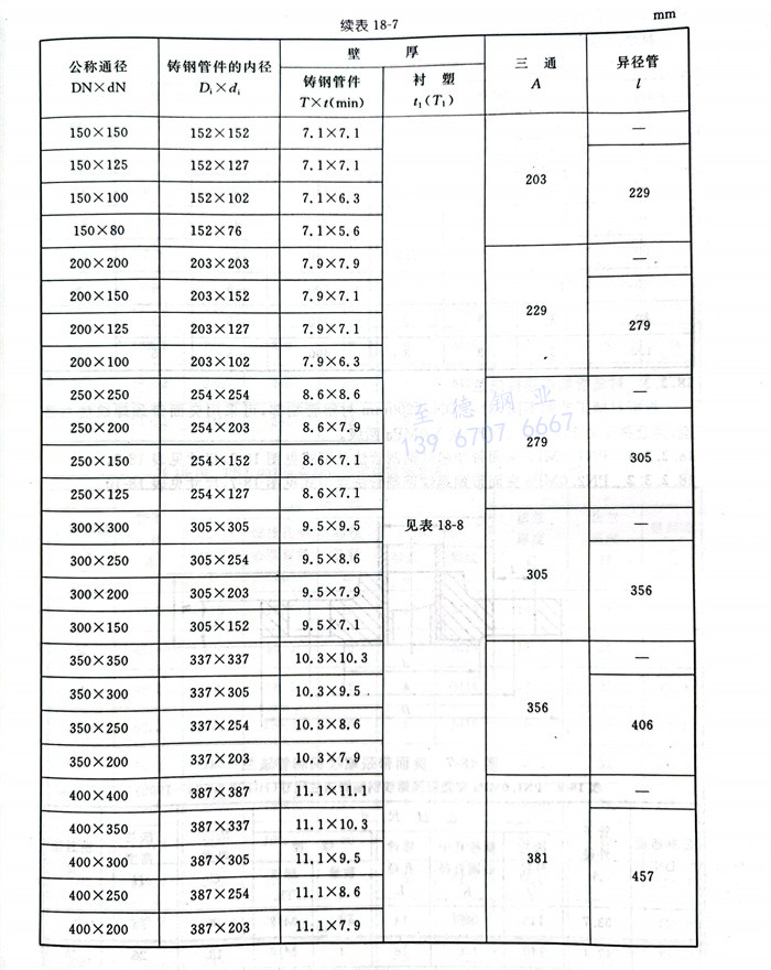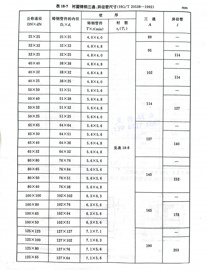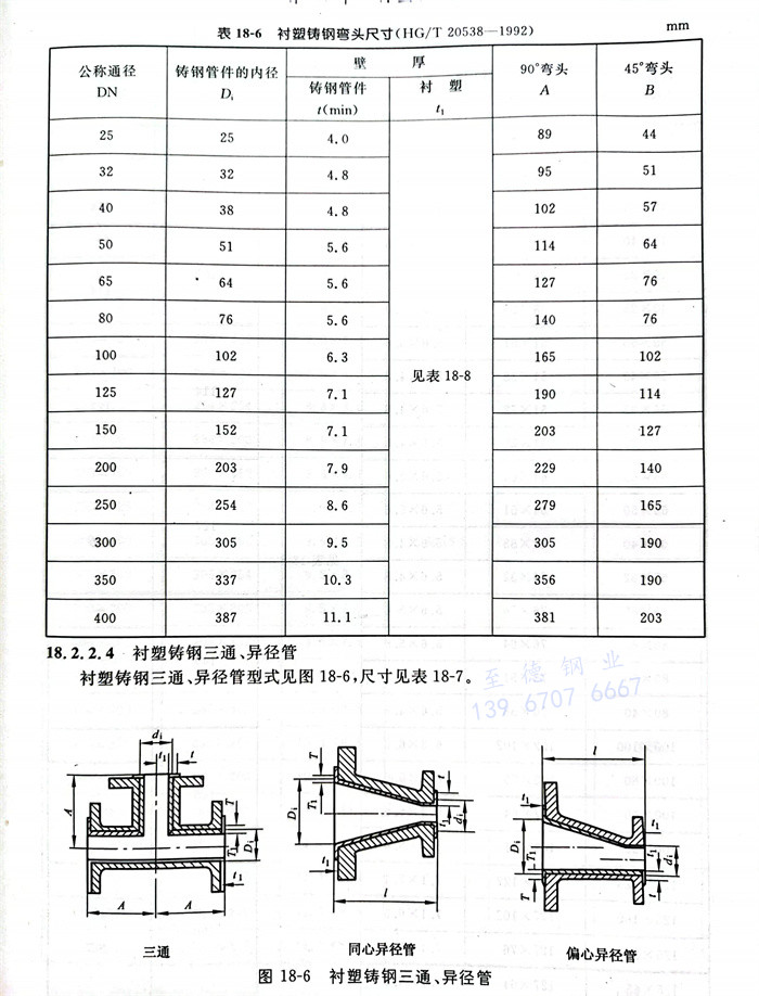 衬塑钢制三通、异径管型式见图18-4,尺寸见表18-5。