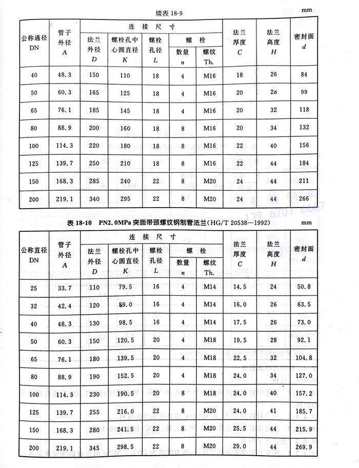 根据衬塑工艺的不同,对于DN≤200mm衬塑管端部,可采用突面带颈螺纹法兰连接,其公称压力PN为1.0MPa及2.0MPa两级。