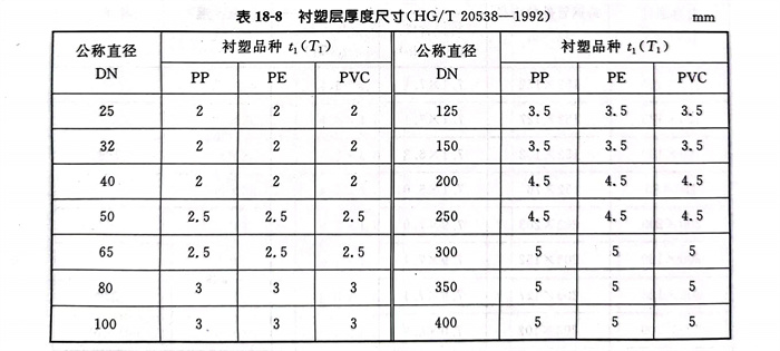 衬塑层厚度尺寸见表 18-8