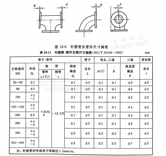衬塑管及管件主要尺寸偏差见图 18-8 及表 18-11。