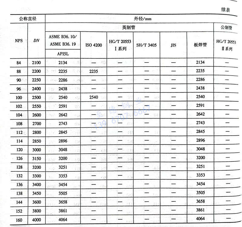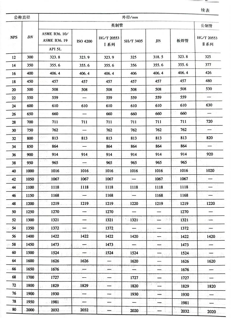 各国金属管道的外径系列数据比较