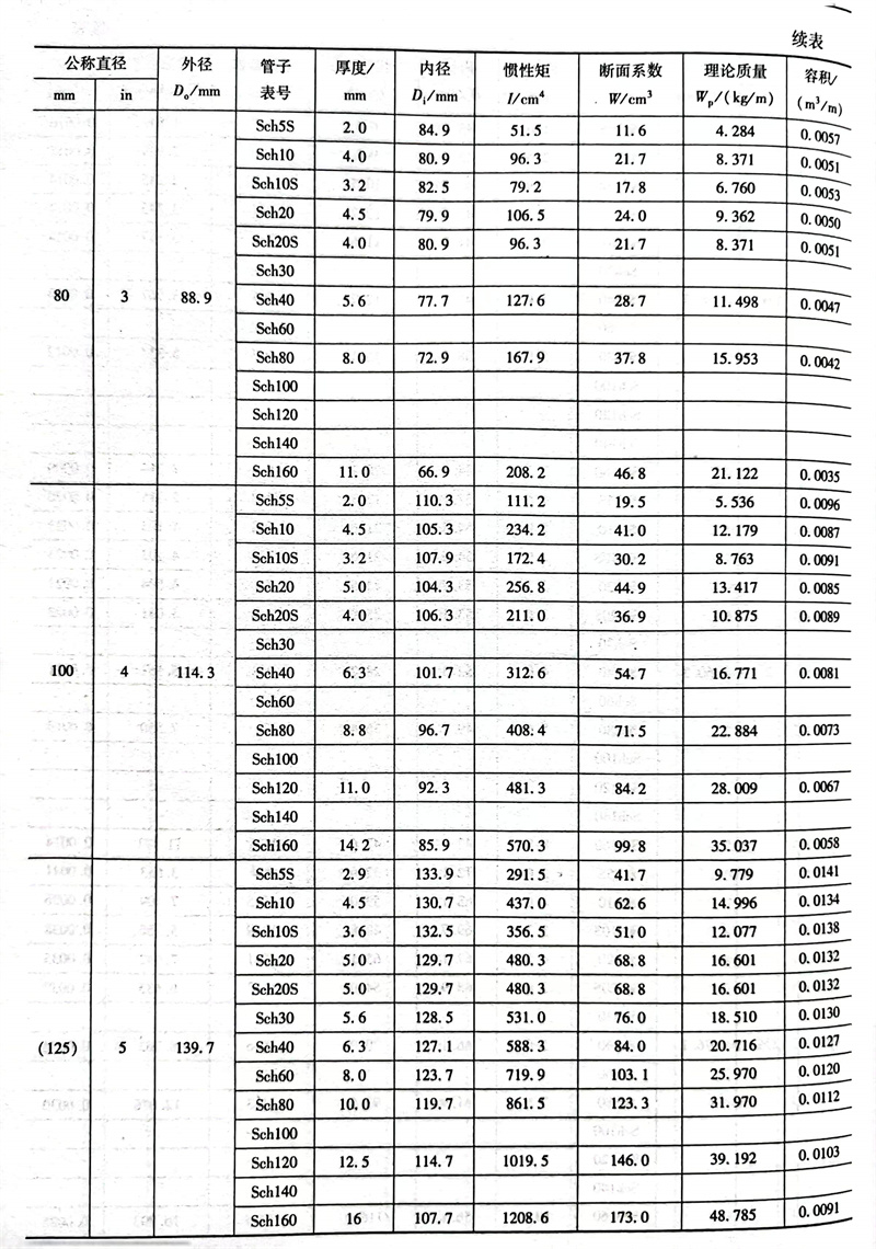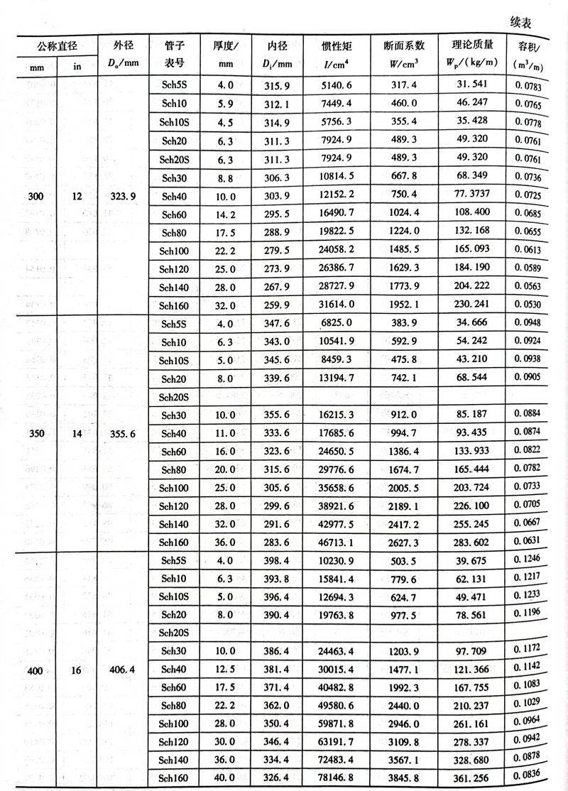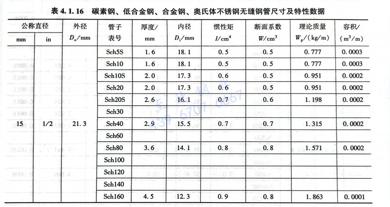 碳素钢、低合金钢、合金钢、奥氏体不锈钢无缝钢管尺寸及特性数据见表4.1.16。