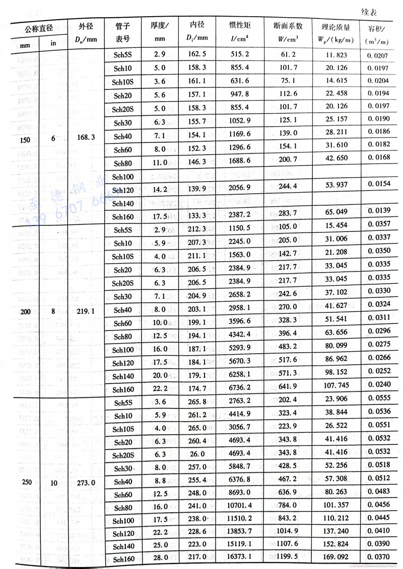 碳素钢、低合金钢、合金钢、奥氏体不锈钢无缝钢管尺寸及特性数据