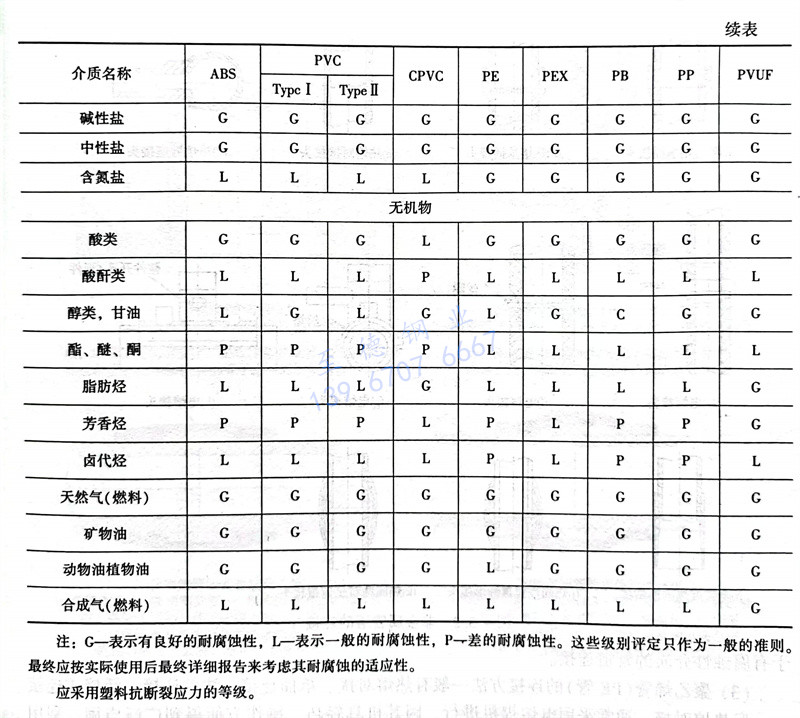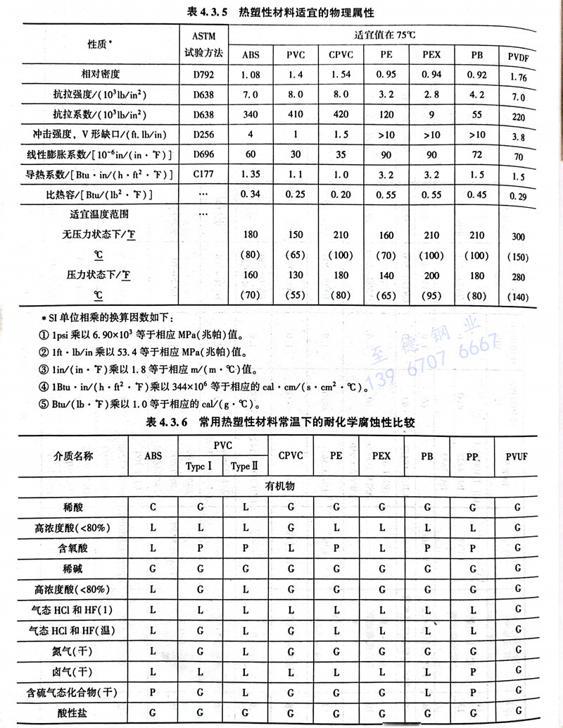 热塑性材料适宜的物理属性见表 4.3.5 ,常用热塑性材料常温下的耐化学性腐蚀比较 见表 4.3.6