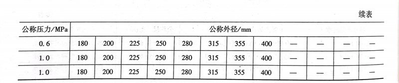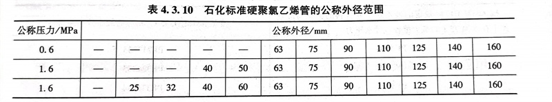 表4.3.10 石化标准硬聚氯乙烯管的公称外径范围