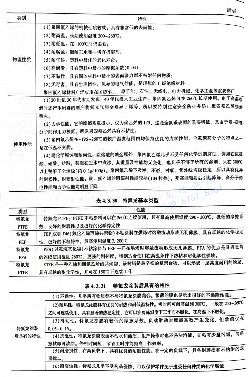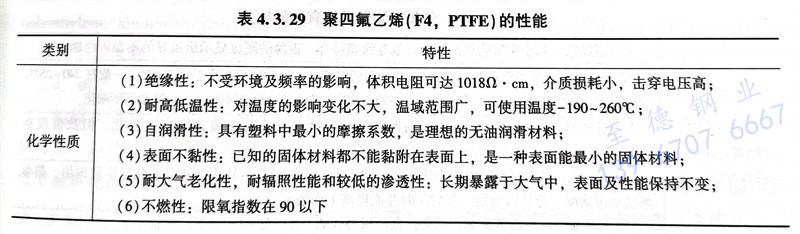 表4.3.29 聚四氟乙烯(F4,PTFE)的性能