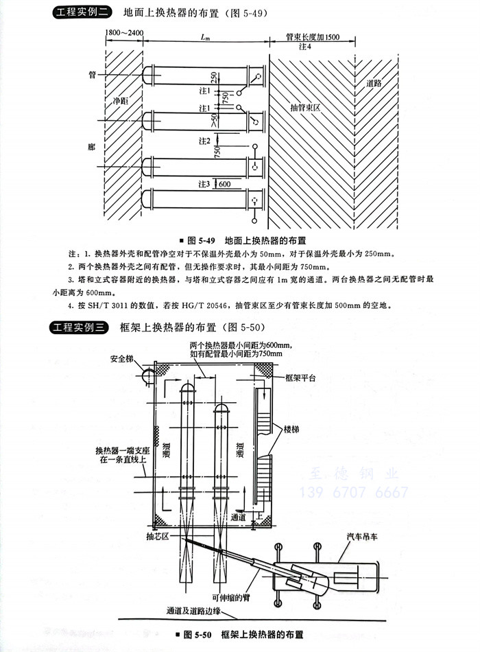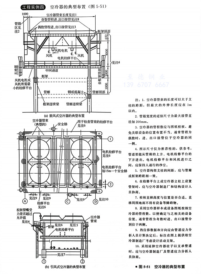 6.在检修平台上或空冷器立柱上设置管架时,应与空冷器制造厂和结构设计人员协商。