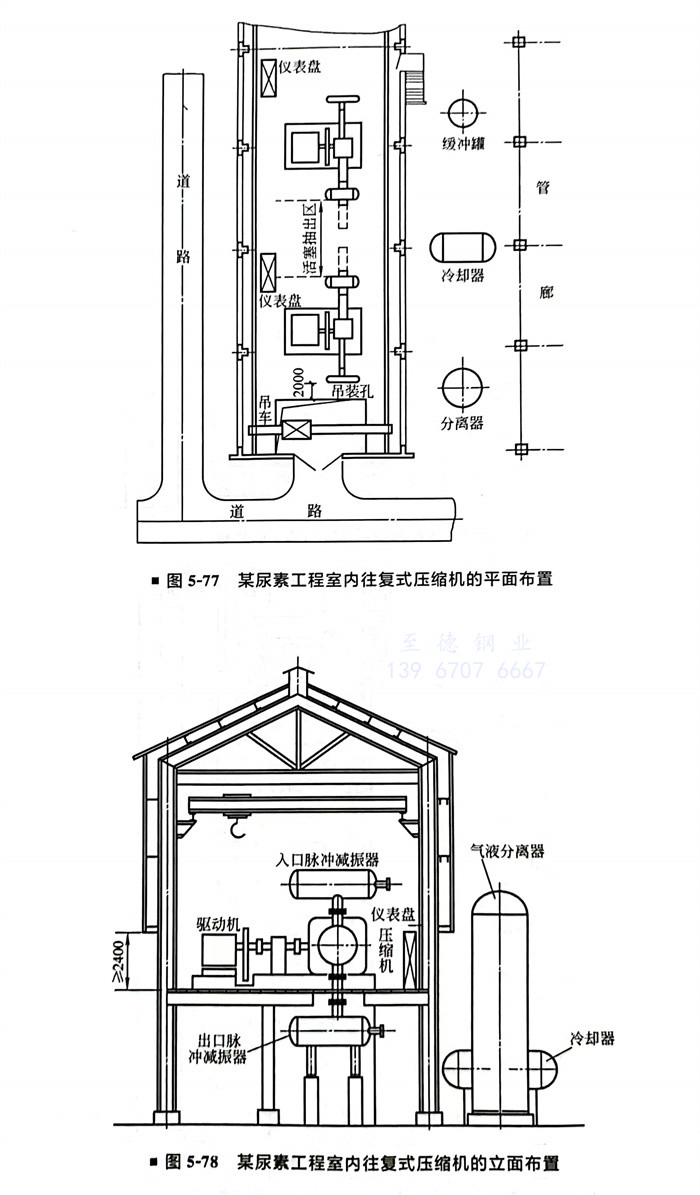 室外往复式压缩机的布置(图5-79)